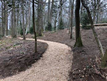 Sentier forestier en plaquette de bois.